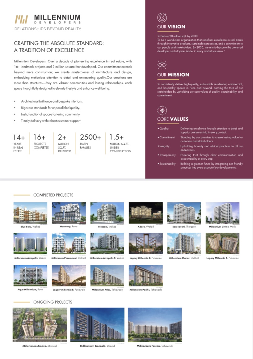 With an aspiration to build not just homes but a community laced with utmost comfort and convenience, Millennium Developers desire to create balanced living spaces. Every venture is built with a focus on bringing happiness to our customers and elevating their lifestyle in all spectrums of life. Since the very inception of Millennium Developers, our unceasing commitment to the satisfaction of our customers as well as the society by way of sharing the rewards with all has been and always will be the secret to our phenomenal growth.